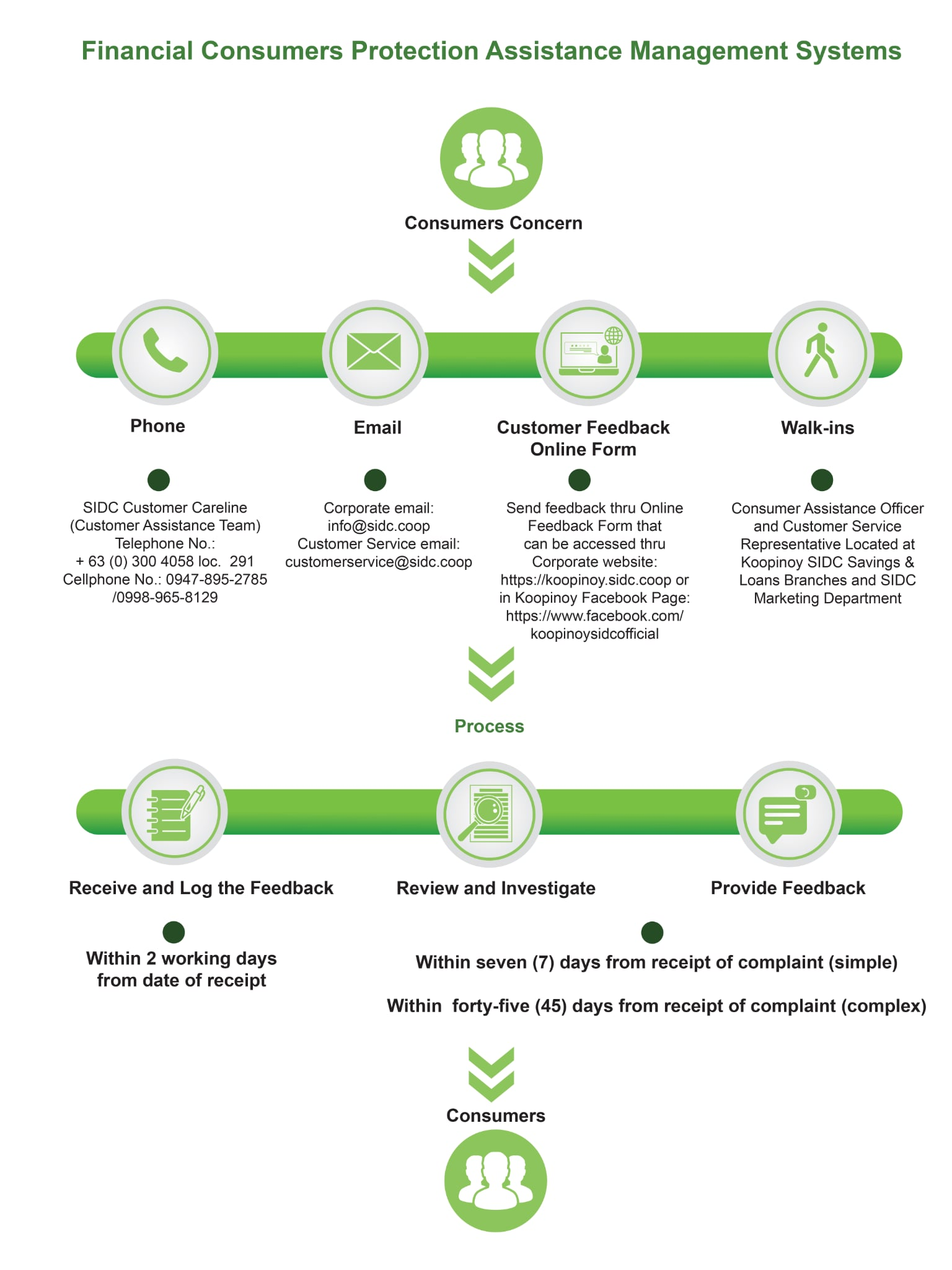 The Financial Consumers Protection Assistance Management Systems (FCPAMS) Manual sets forth the general policies and procedures of Sorosoro Ibaba Development Cooperative (SIDC) in handling of consumer concerns, in compliance with the following regulations:
